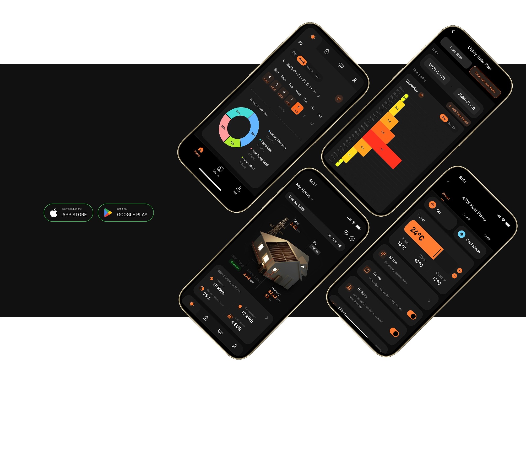 Powered by our patented AI technology, one smart app gives you full control of your home energy system. Manage your heat pump, battery, inverter, and energy flow in one place, replacing the multiple apps traditionally needed with one simple experience.