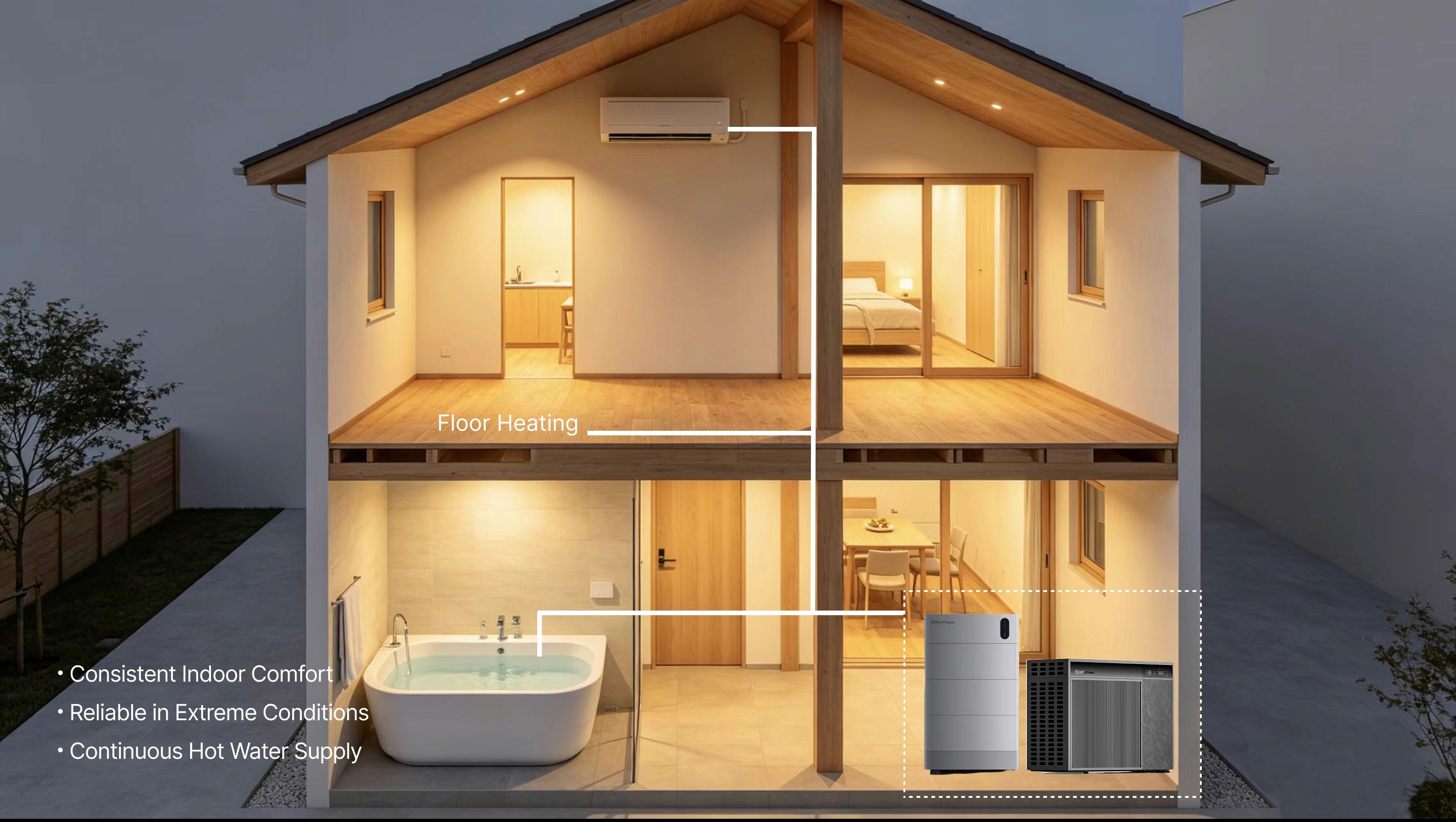 with stable indoor comfort and 24-hour hot water throughout winter.